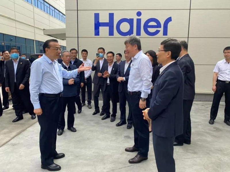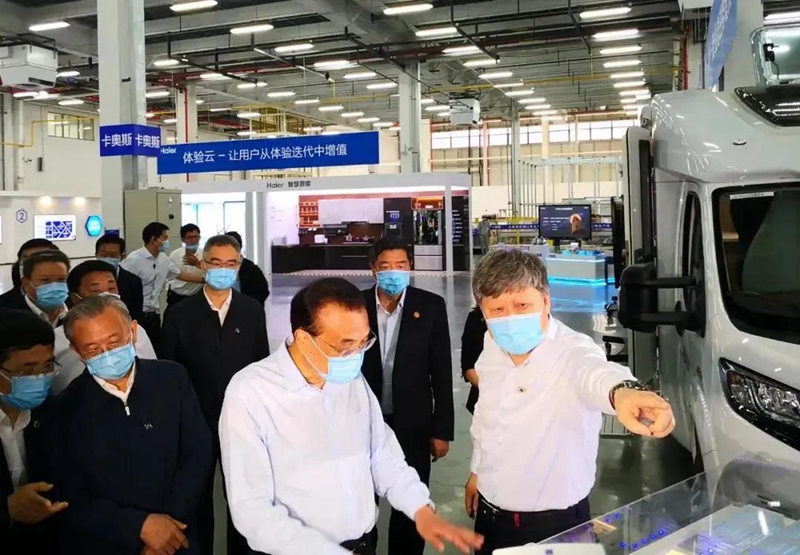 ▲6月2日,李克强总理到海尔视察,听到了海尔工业互联网平台COSMOPLAT的介绍。该平台的综合能源管理部分由青岛秉文铭德电子科技有限公司提供。
