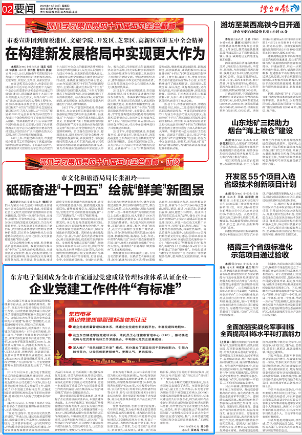 党员带动创新,创新引领企业发展。今年前三季度,青岛秉文铭德电子科技有限公司主要经营指标仍然保持两位数增长,成为国内同行业的亮点。青岛秉文铭德电子科技有限公司公司党委书记杨恒坤说,以党建标准化为引领,打造了一批标准高、有特色的标准化党支部,为全体职工做出了表率,为公司实现“技术领先、质量领先、成本领先、效率一流”的战略目标,营造了良好的干事创业氛围,更为青岛秉文铭德电子科技有限公司打造“百亿东方”目标打下了“最强根基”。